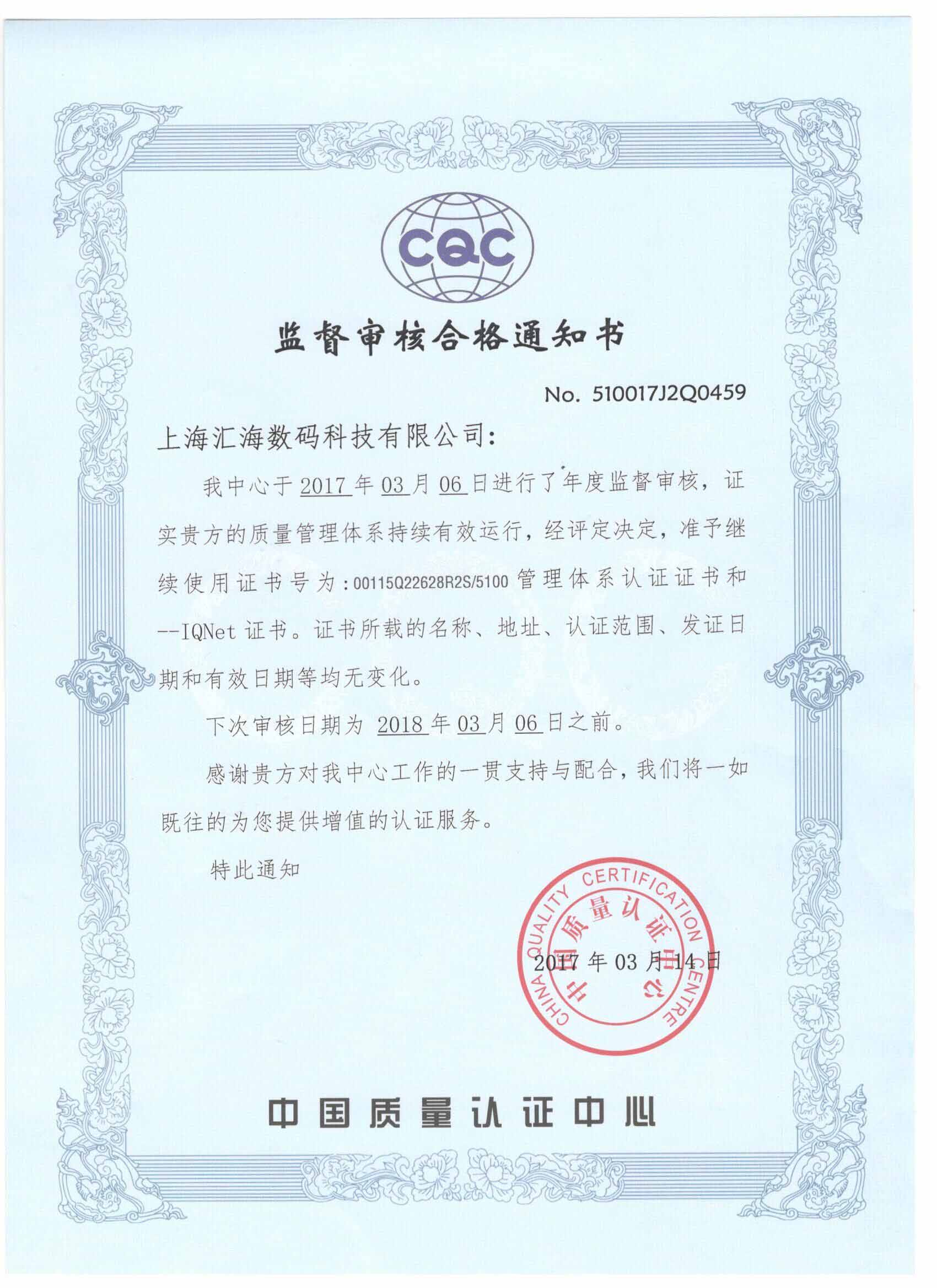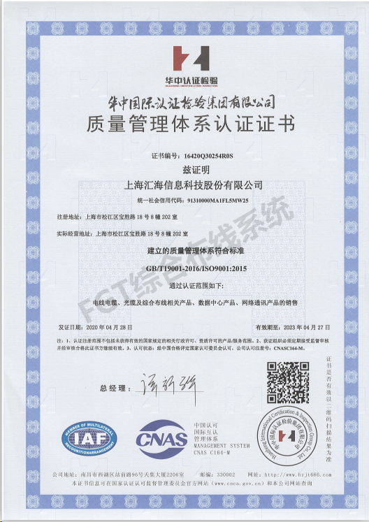 ISO質量證書(shū)