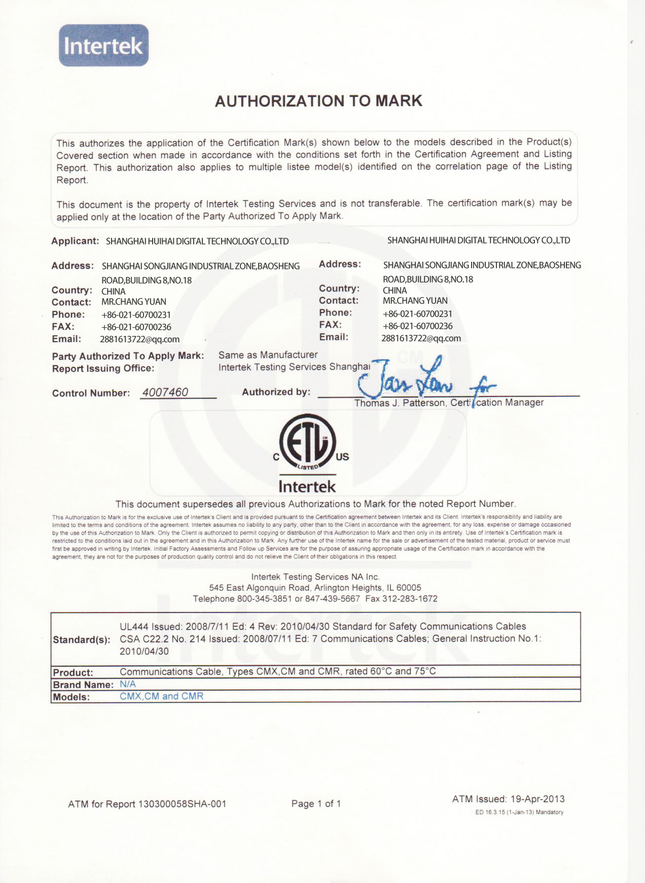 ETL證書(shū)
