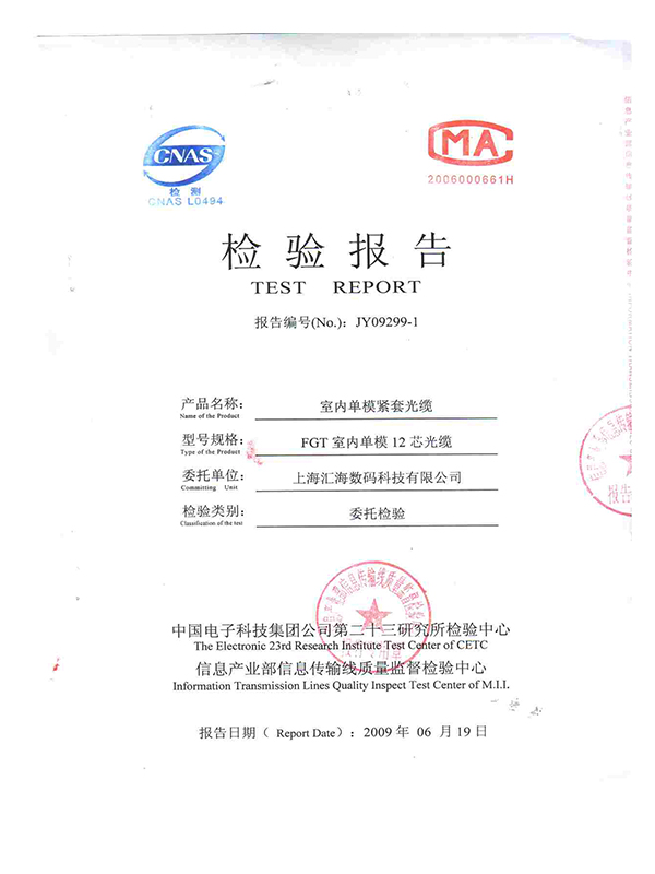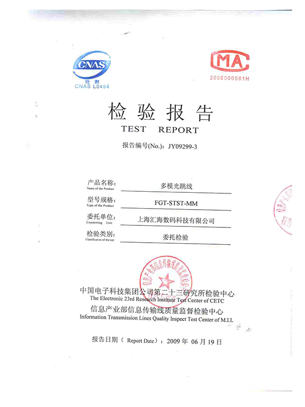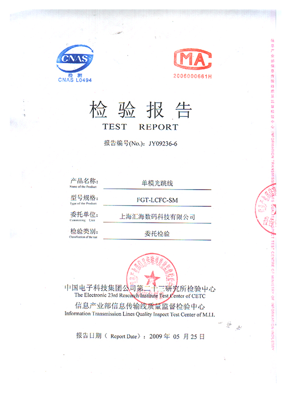 FCFC光(guāng)纖跳(tiào)線檢測報告