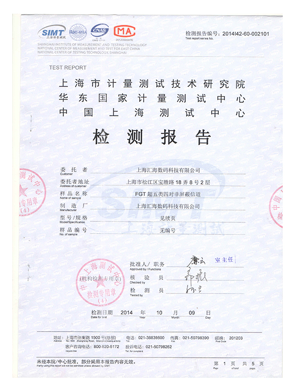 超五類非屏蔽鏈路(lù)檢測報告