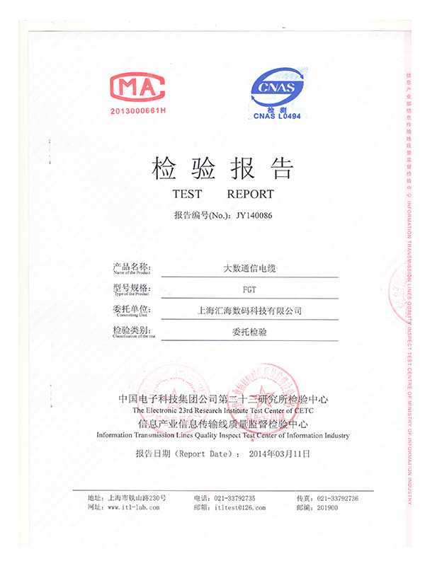 大(dà)對數電纜檢測報告