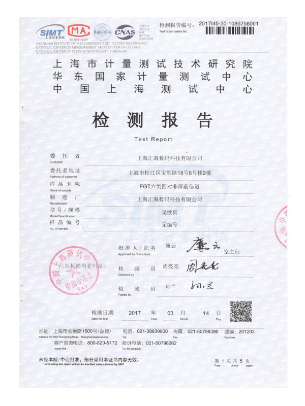 六類非屏蔽鏈路(lù)檢測報告