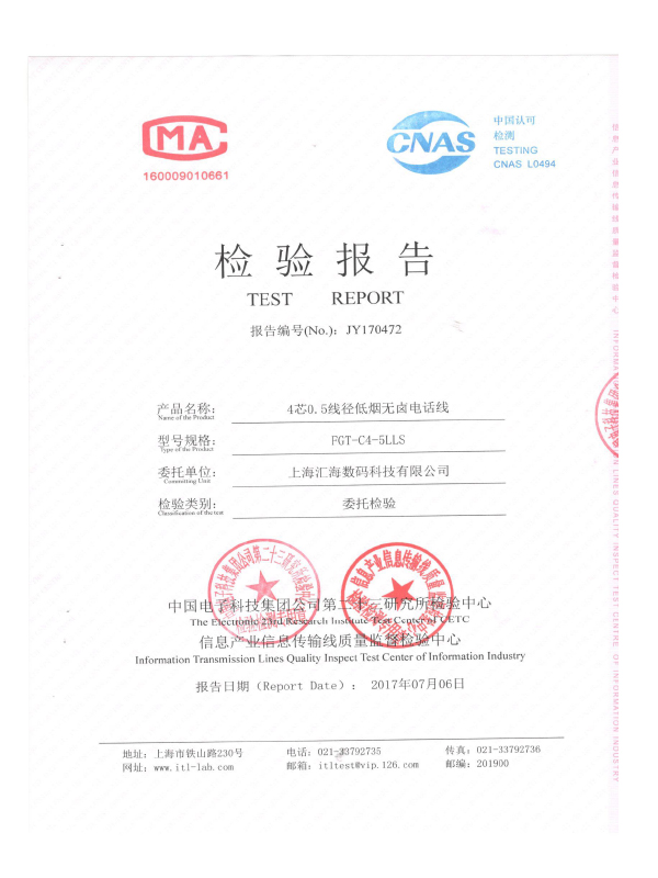 4芯低煙無鹵電話(huà)線檢測報告