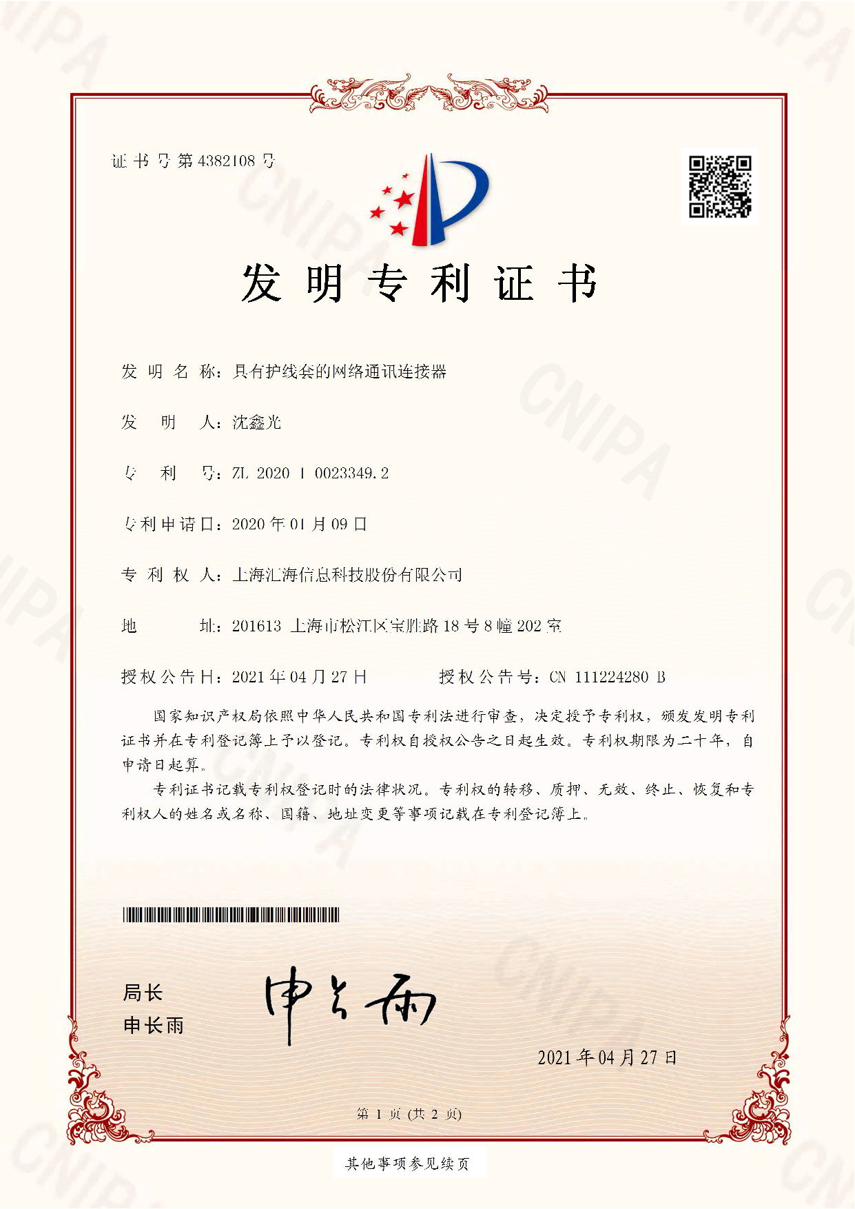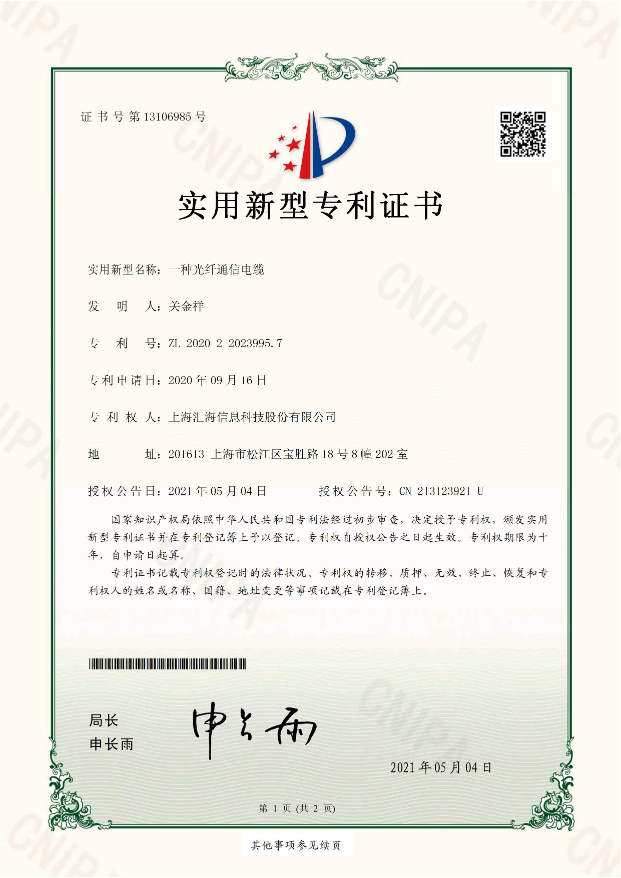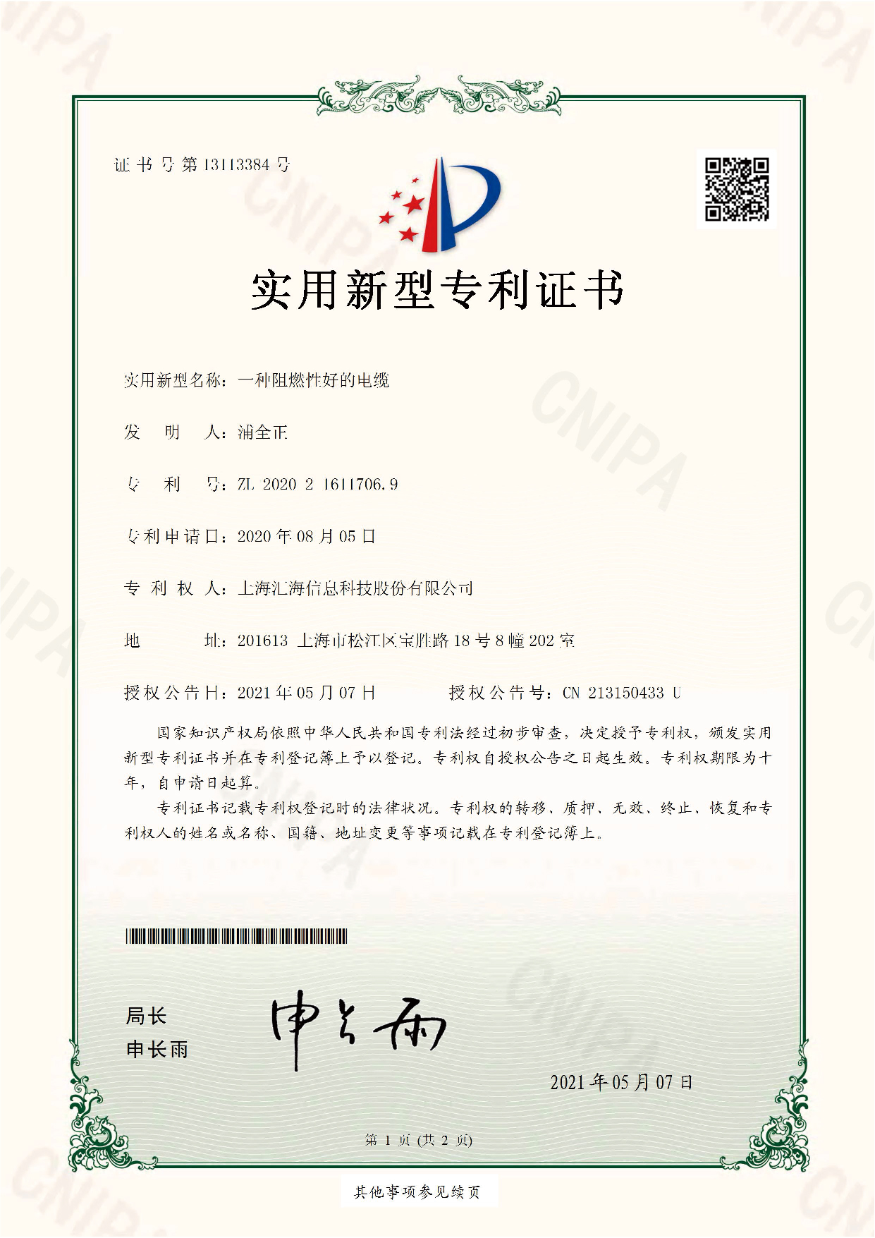 專利證書(shū)