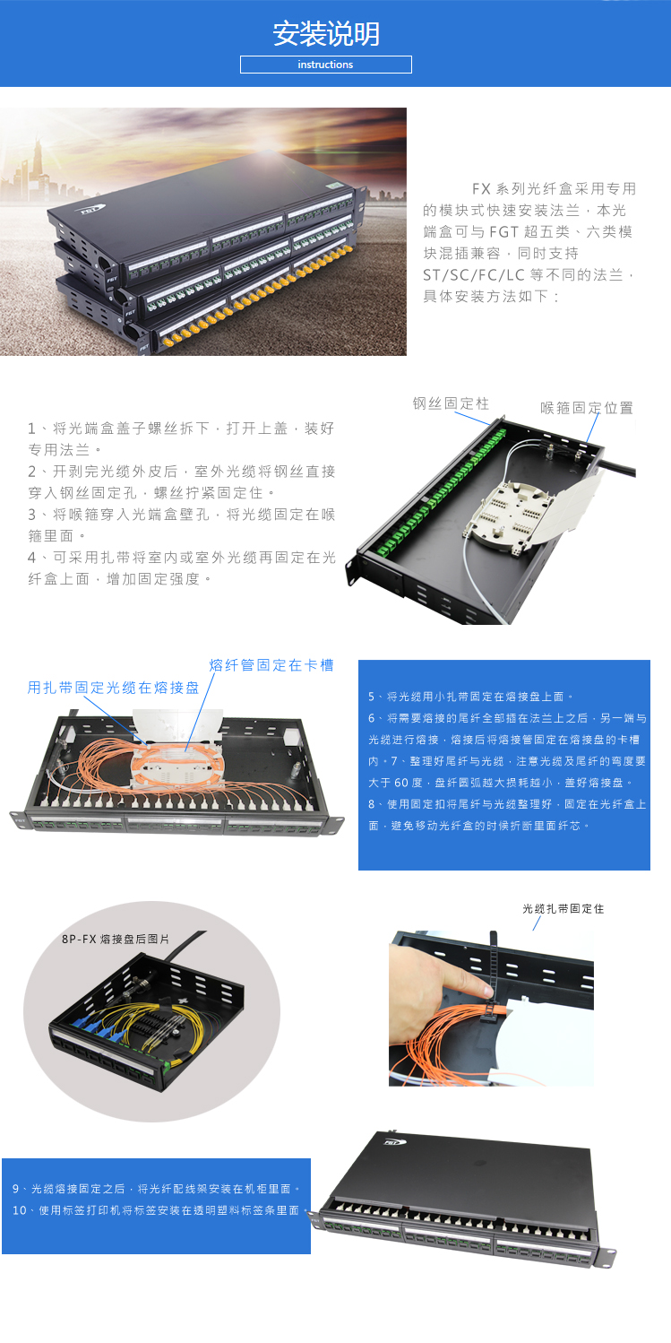 采用模塊化光(guāng)纖适配器(耦合器)接口,配置靈活、可(kě)同時安裝LC/SC/ST/FC